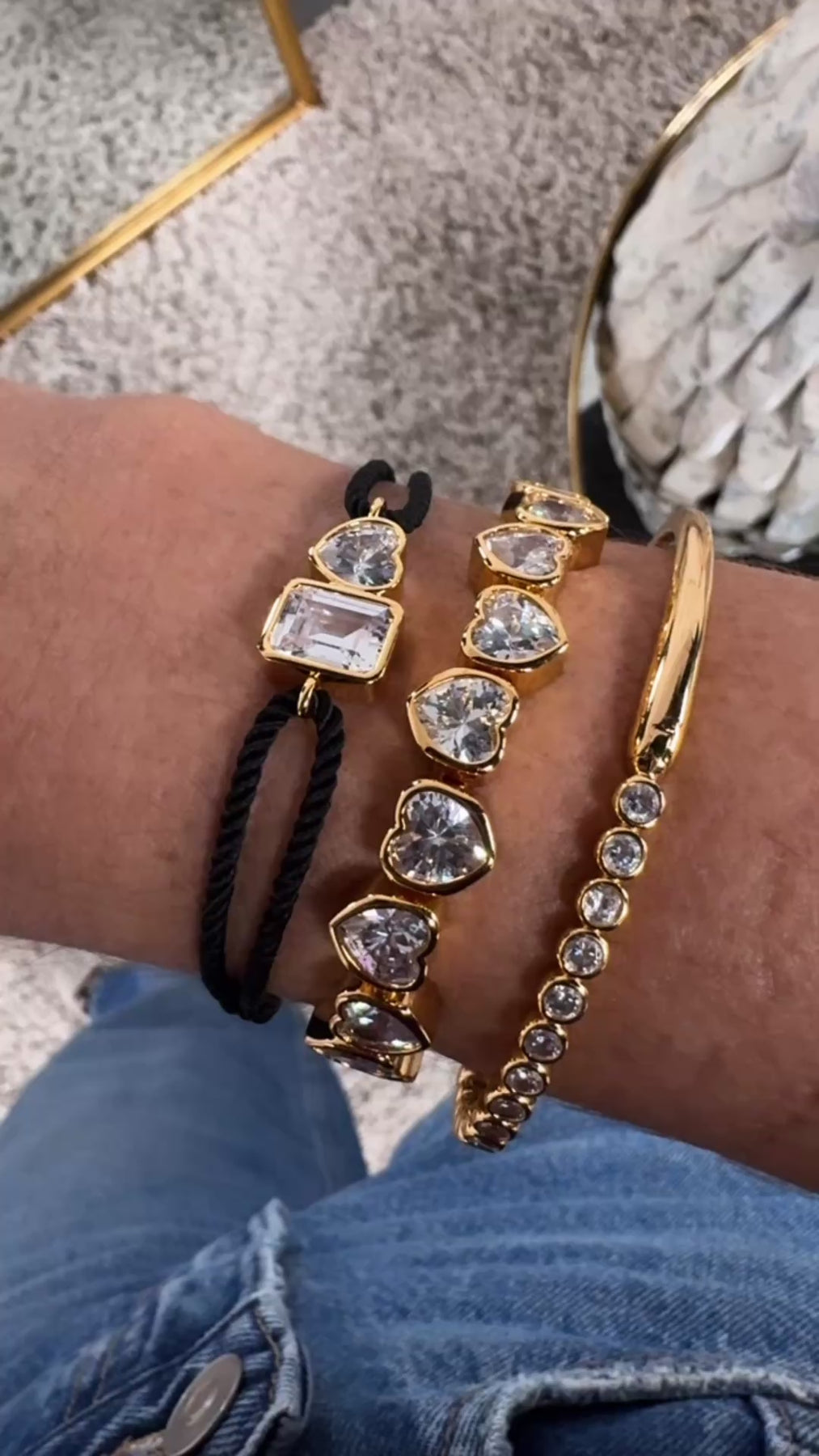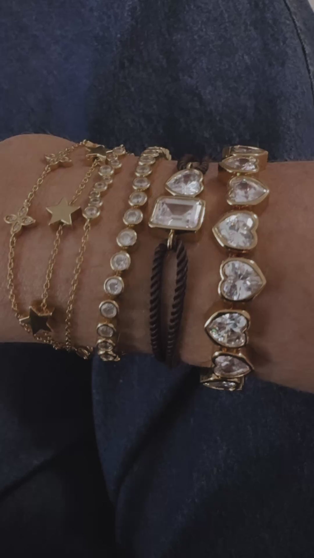 The Heart and Shine Bracelet is a delicate blend of love and light. Featuring a radiant heart-cut stone paired with a sleek baguette crystal, this piece brings together softness and modern elegance in one effortless design.