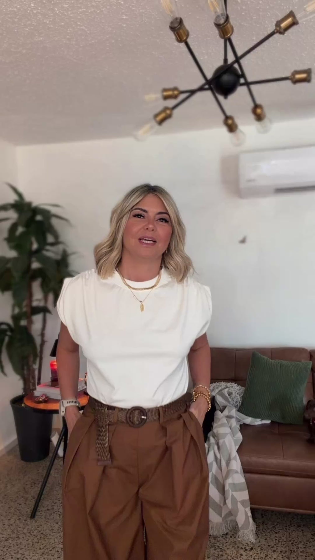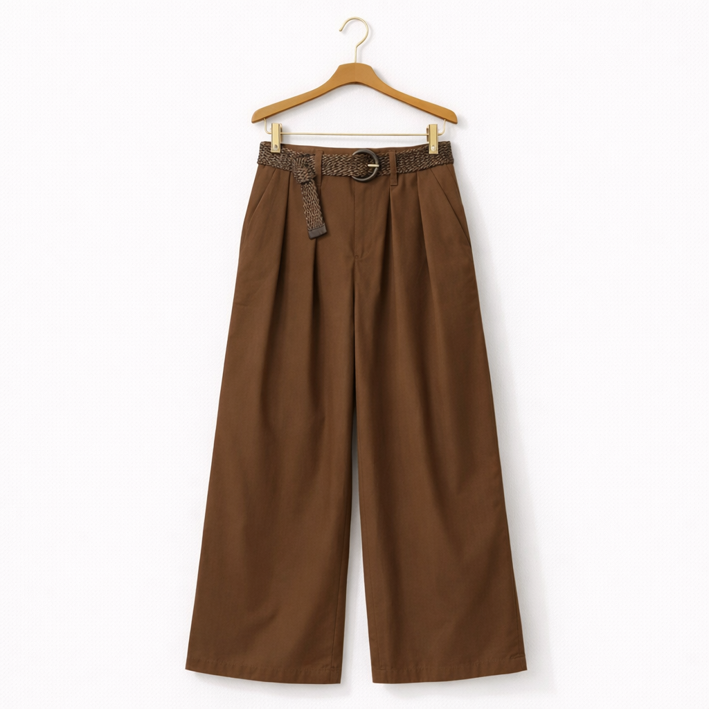 Effortlessly polished with a modern edge. The Sienna Tailored Pants feature a flattering high-waisted fit, soft front pleats, and a relaxed wide-leg silhouette that elongates the figure. Finished with a woven statement belt, they bring an elevated yet easy feel to any outfit. A versatile piece that pairs beautifully with fitted tops, blouses, or lightweight knits.